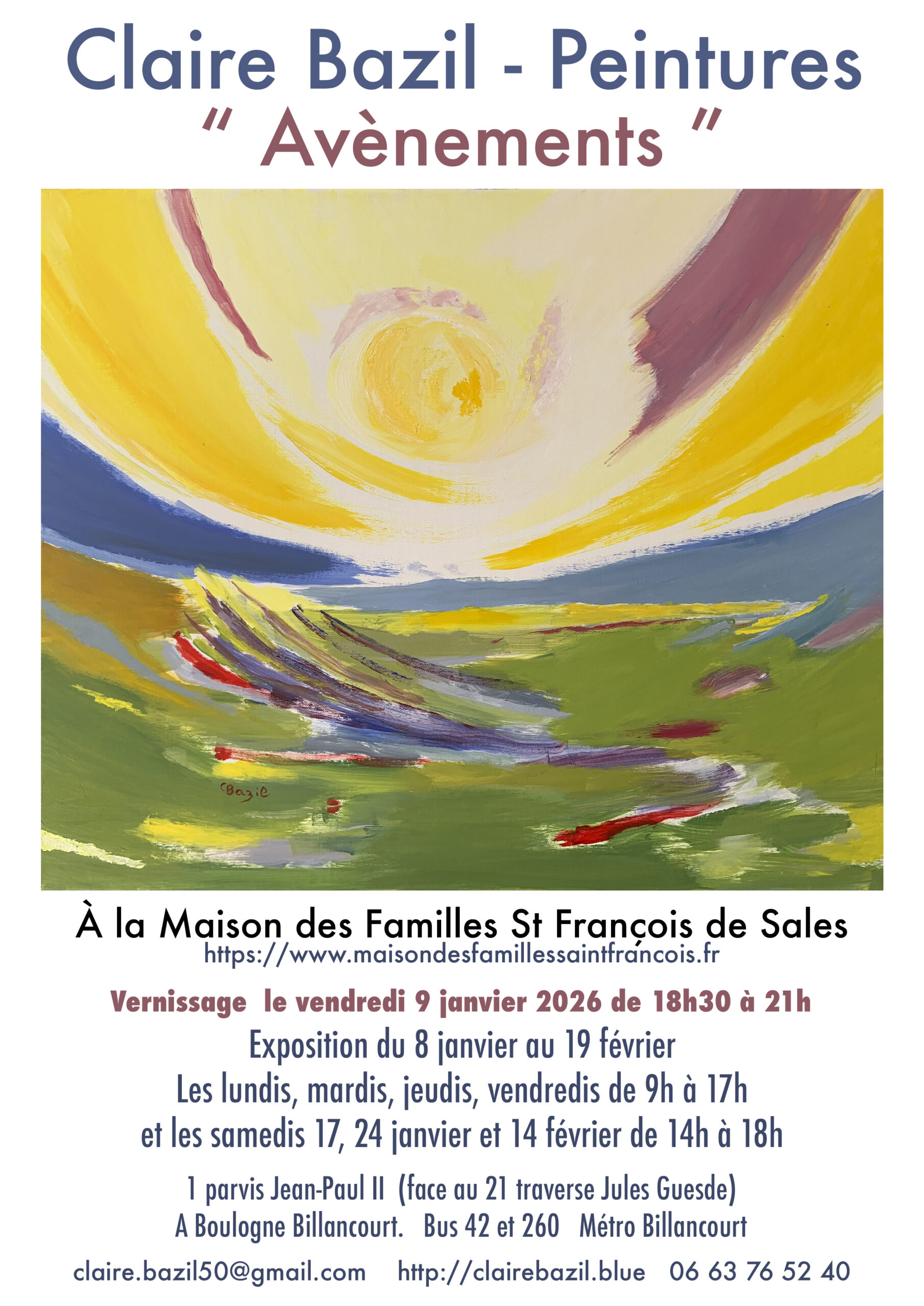 affiche claire bazil expo maison des familles 2026-1ag Publié le 30 novembre 2025 à 1810 × 2560 dans Ma prochaine exposition , du 8 janvier au 19 février 2026 à Boulogne Billancourt